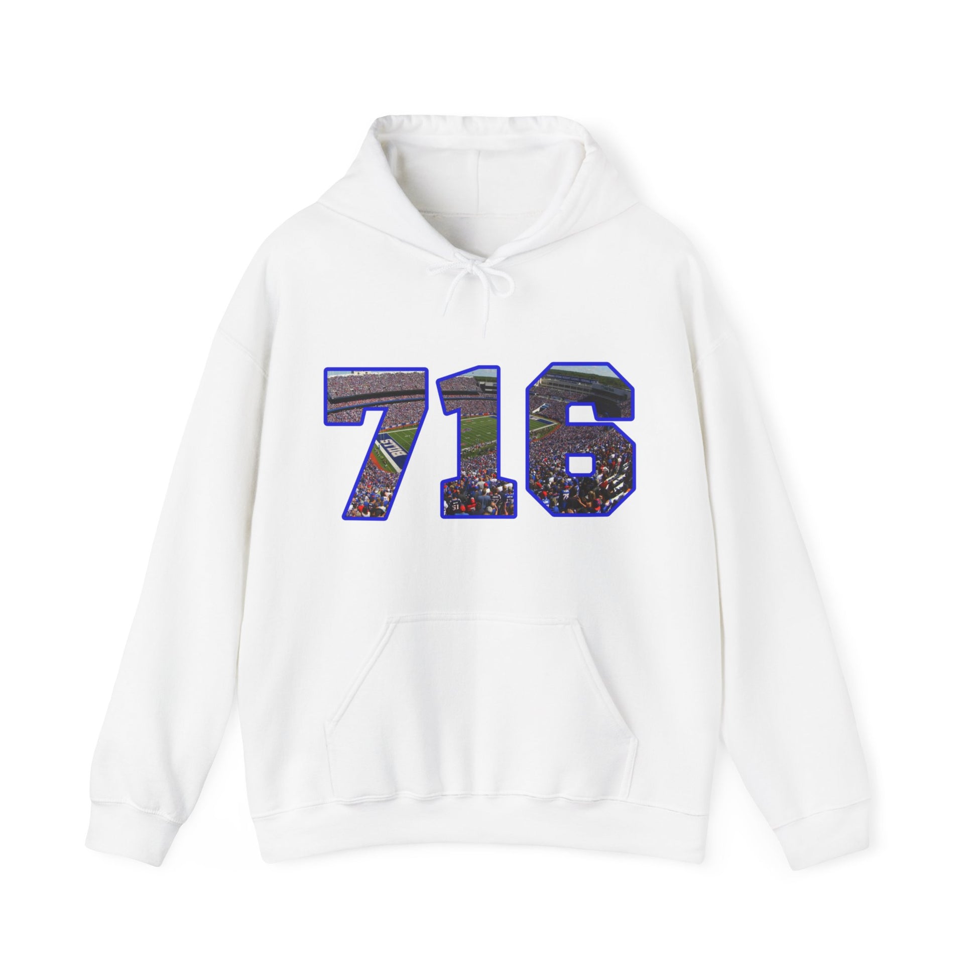 This 716 Stadium Picture unisex heavy blend hooded sweatshirt is relaxation itself. Made with a thick blend of cotton and polyester, it feels plush, soft and warm, a perfect choice for any cold day. In the front, the spacious kangaroo pocket adds daily practicality while the hood's drawstring is the same color as the base sweater for extra style points. Not only will it keep you warm, but it will boast your love for your city in the 716!