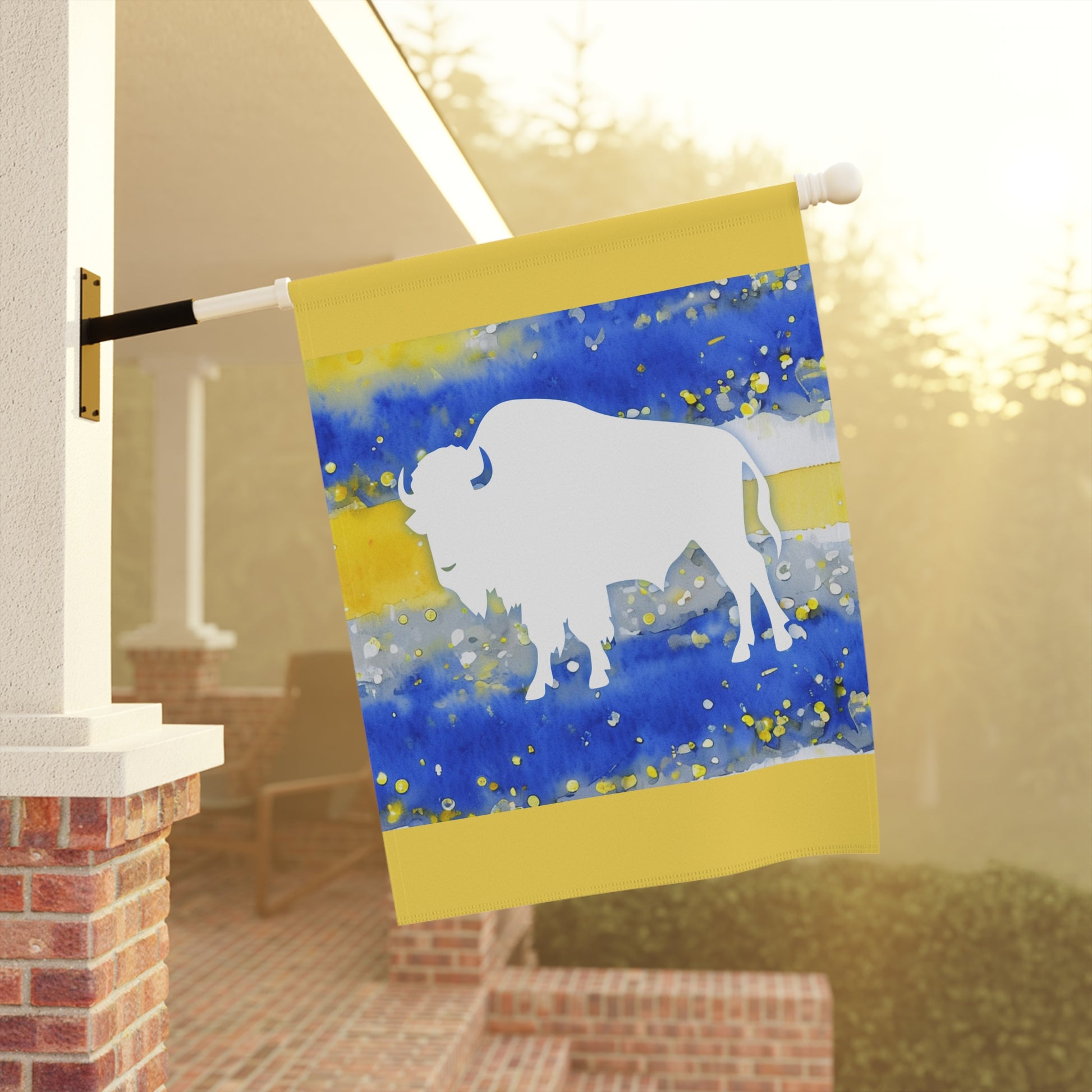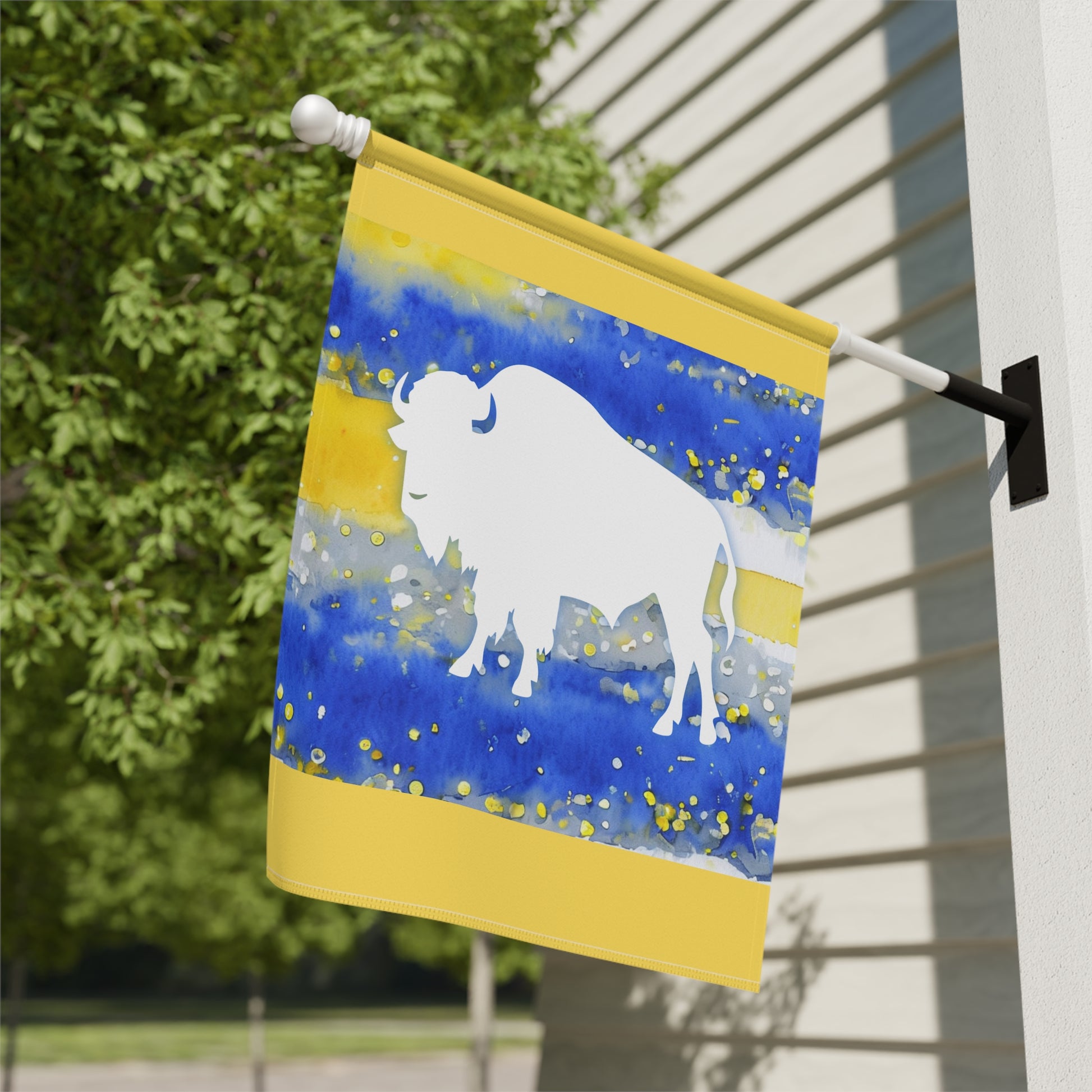 Brighten Your Outdoor Space with a Beautifully Designed Buffalo Hockey Watercolor Garden Flag! 💙🌿💛