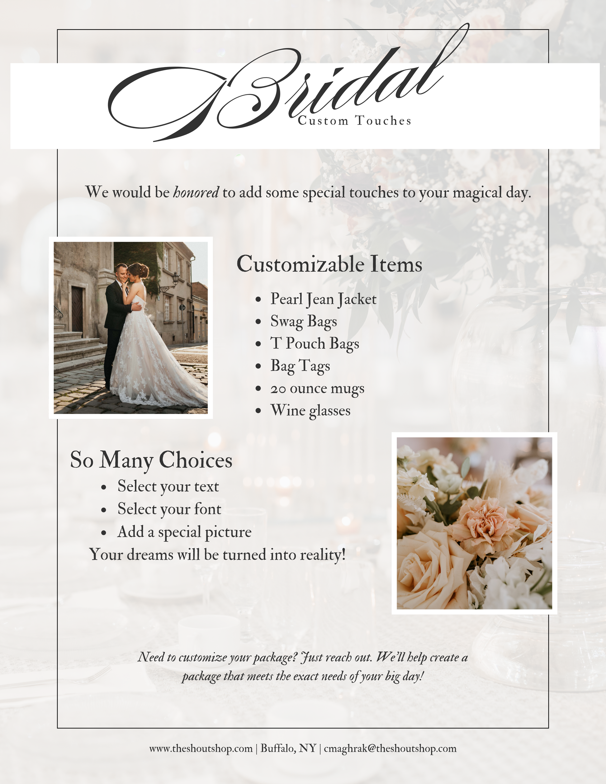 Embroidery available in white, gold, black, blush, or your custom color