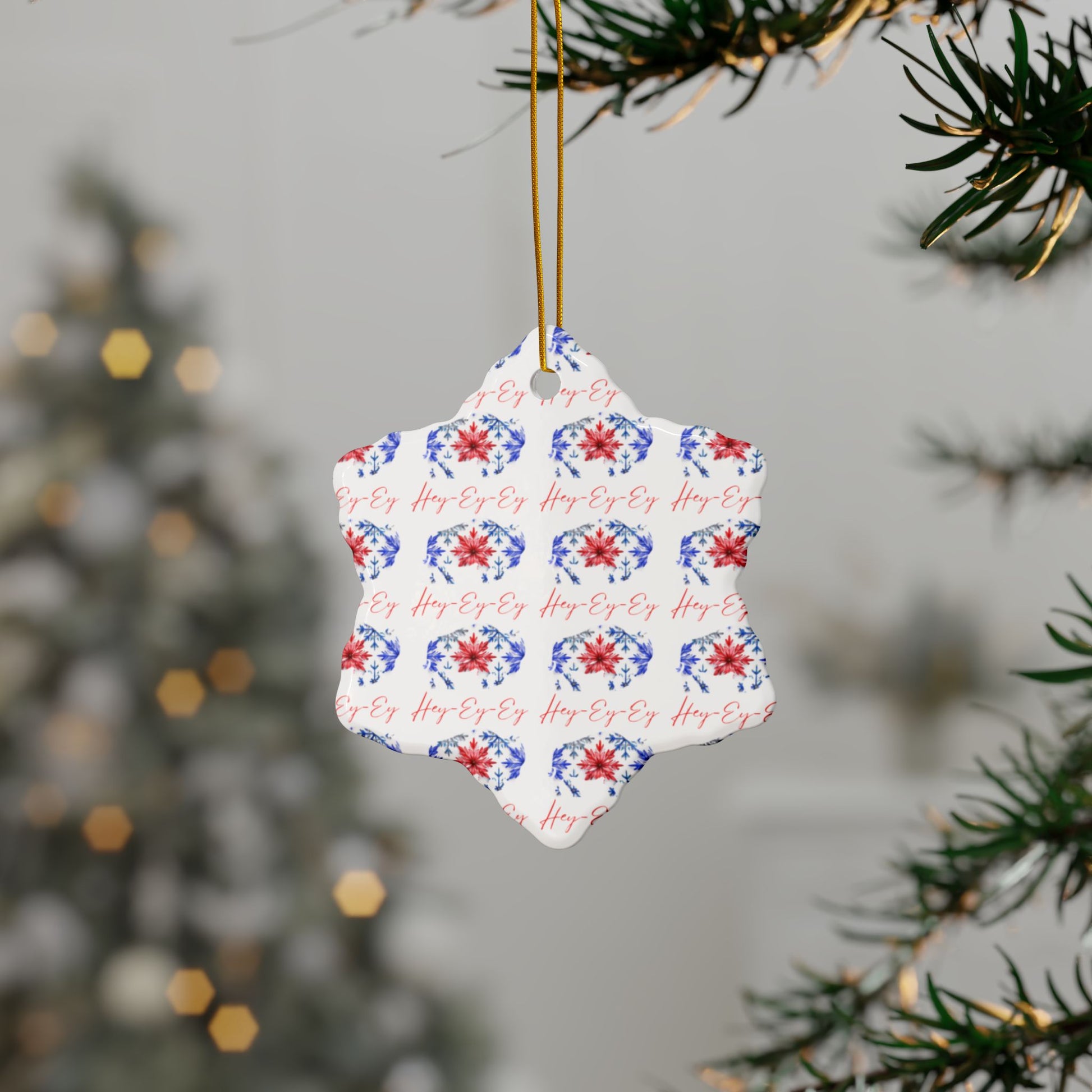 Celebrate the spirit of Buffalo, NY, with this beautifully crafted ceramic holiday ornament. Featuring a vibrant, double-sided watercolor design, this ornament captures the essence of the city where the Herd was born. With iconic Buffalo-inspired elements and a touch of holiday charm, it’s the perfect addition to your holiday decor. Each piece is meticulously printed to bring out the rich colors and intricate details, making it a memorable keepsake for yourself or a thoughtful gift for loved ones. Available in packs of 1, 3, 5, or 10, these ornaments are perfect for decorating your tree or sharing a little Buffalo pride this holiday season!