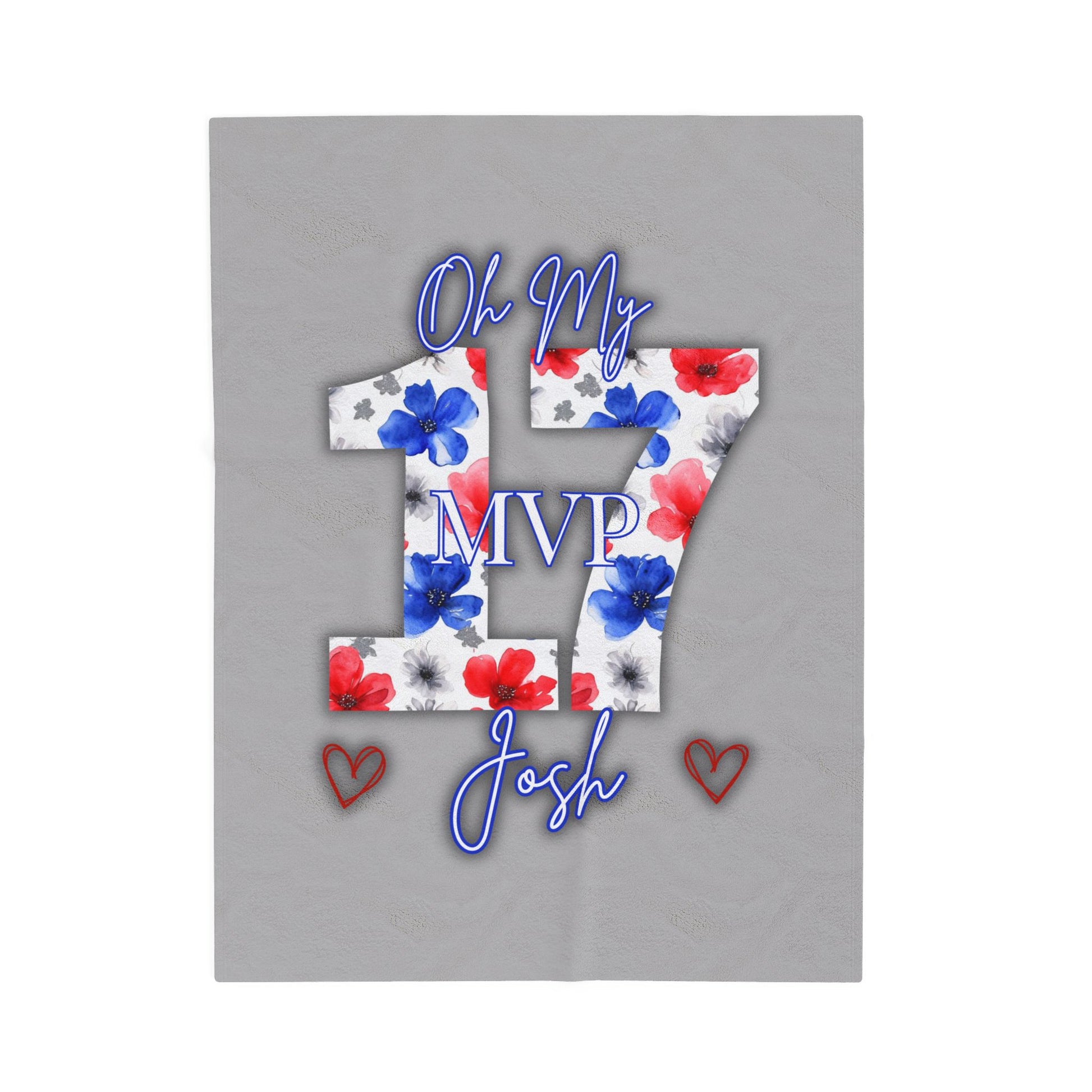 Josh Allen #17 MVP Watercolor Floral Velveteen Blanket – Wrap Yourself in Buffalo Pride! 🏈🌸💙❤️