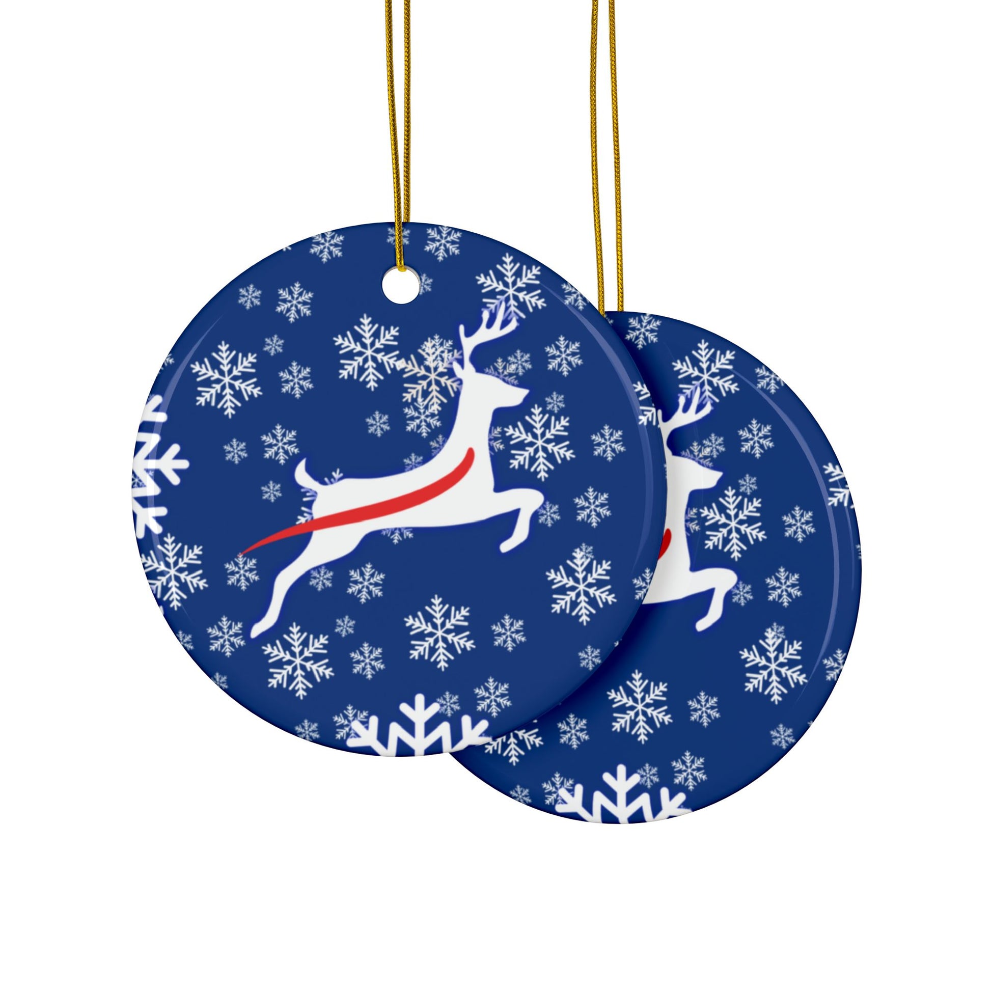 Buffalo Blue Deer Ceramic Ornament: 2-Side Print, Available in (1pc, 3pcs, 5pcs, 10pcs)