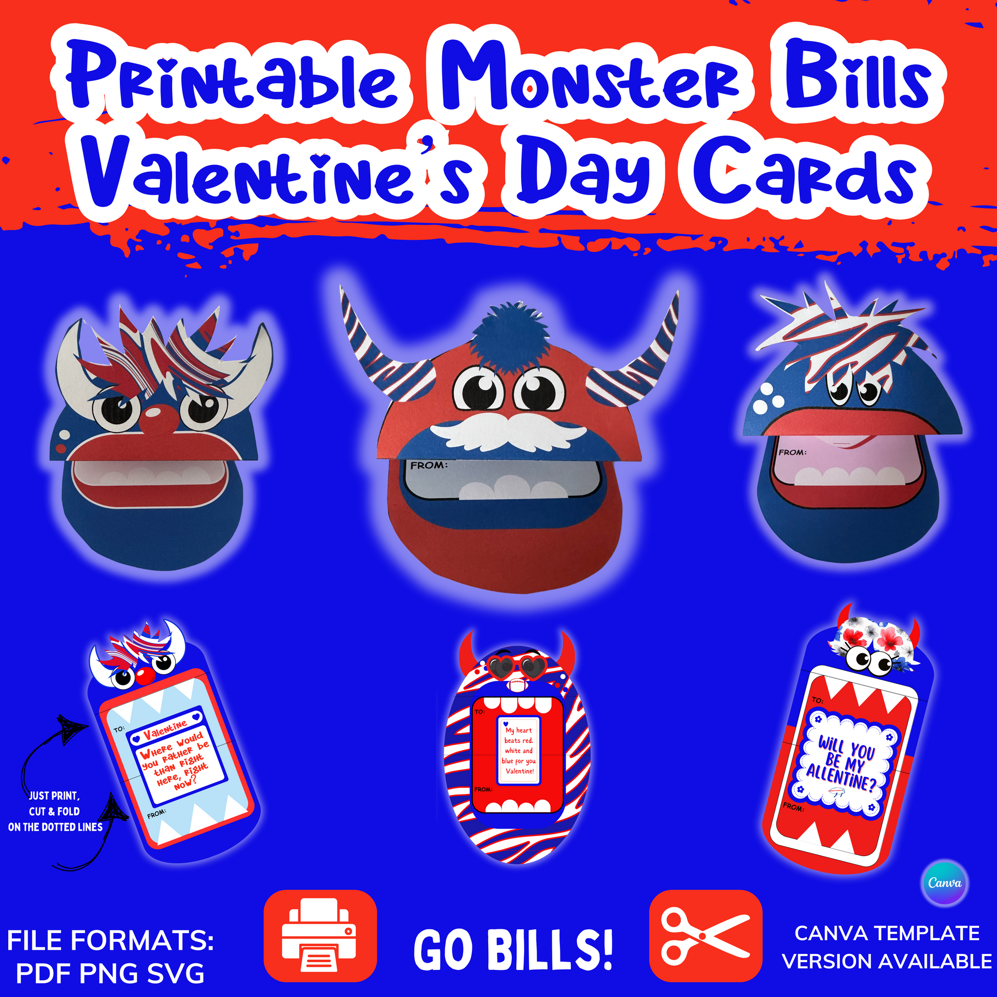 Make your Valentine’s Day legendary with Buffalo Bills Monster Valentine Cards! These unique, foldable cards transform into adorable monster-themed characters, perfect for fans of the Bills Mafia of all ages. Each card features clever Buffalo Bills-themed jargon woven into sweet and funny Valentine’s messages, blending team pride with festive cheer.