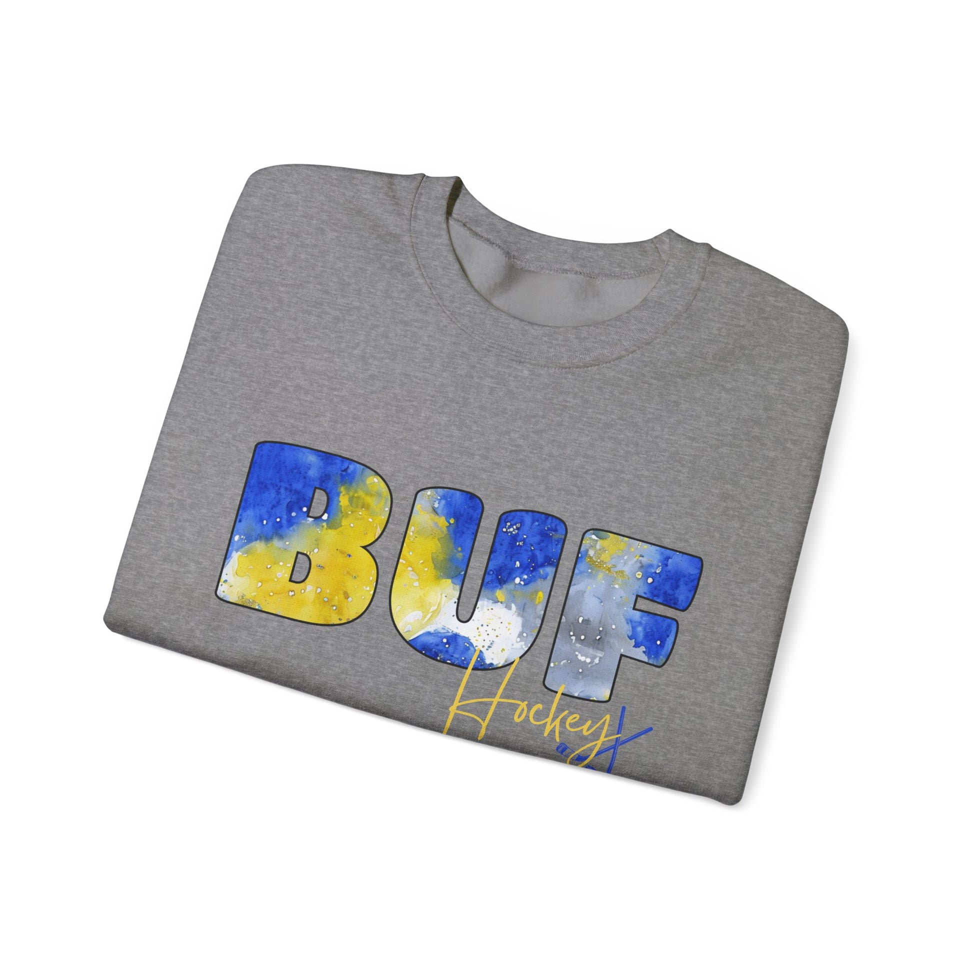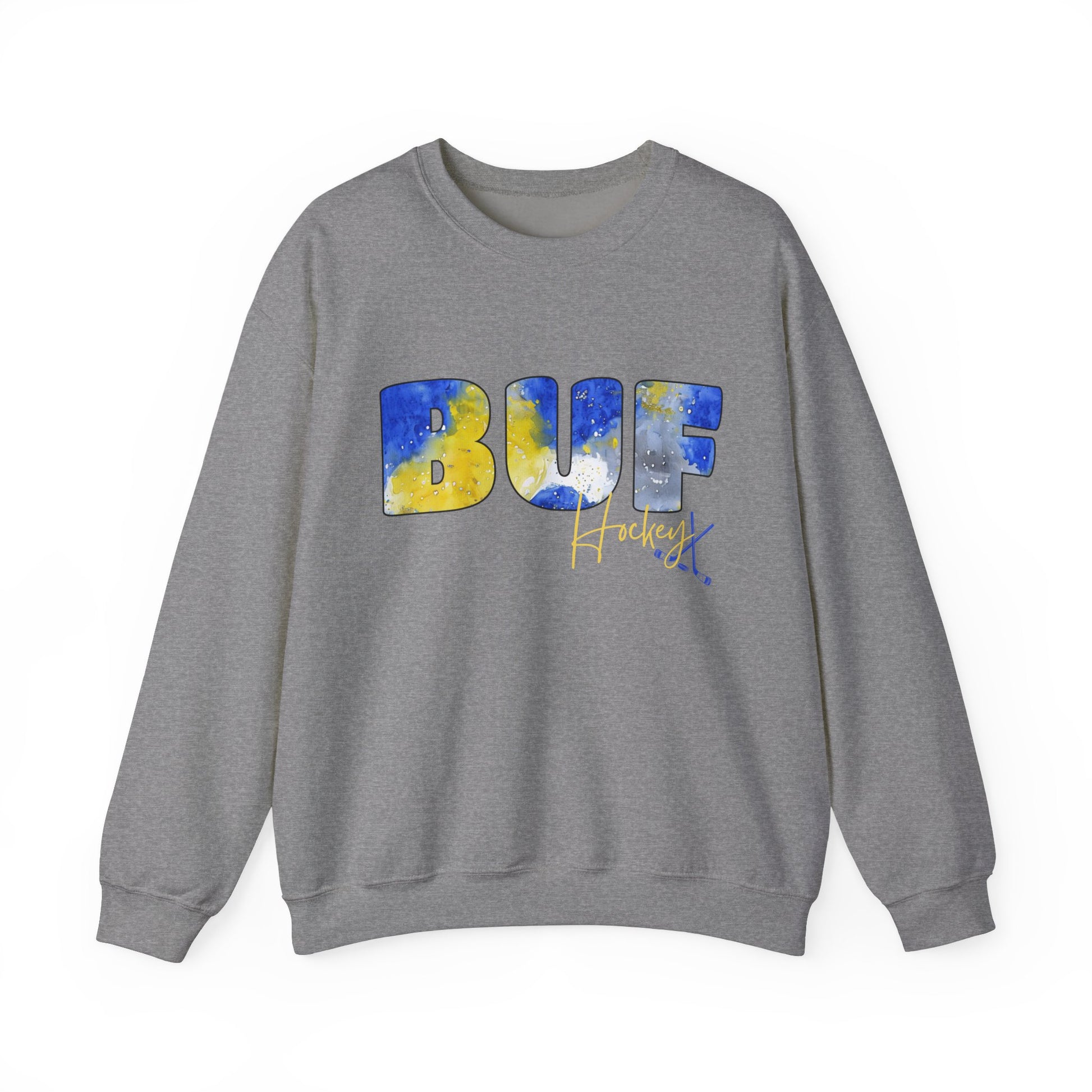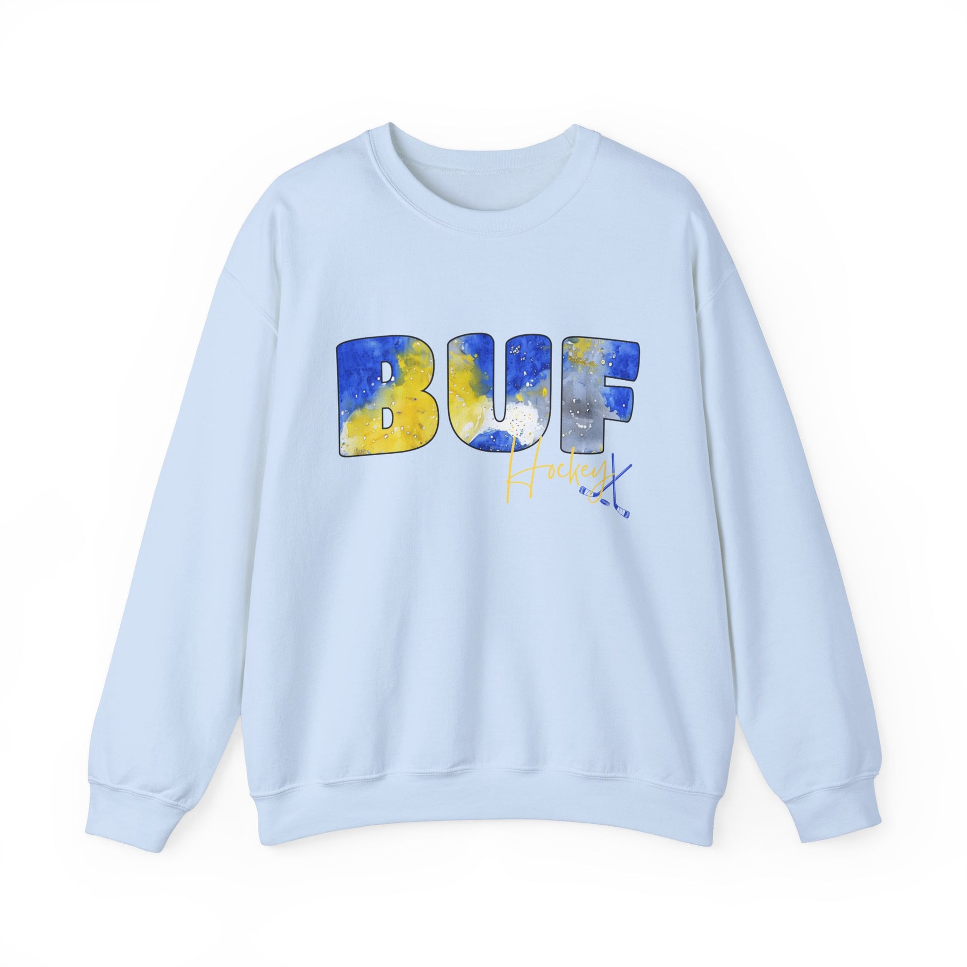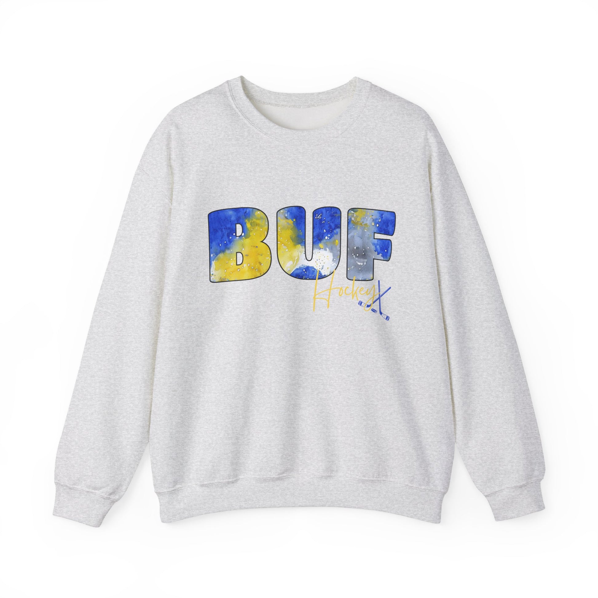 Sabres Paint BUF Watercolor Unisex Heavy Blend™ Crewneck Sweatshirt