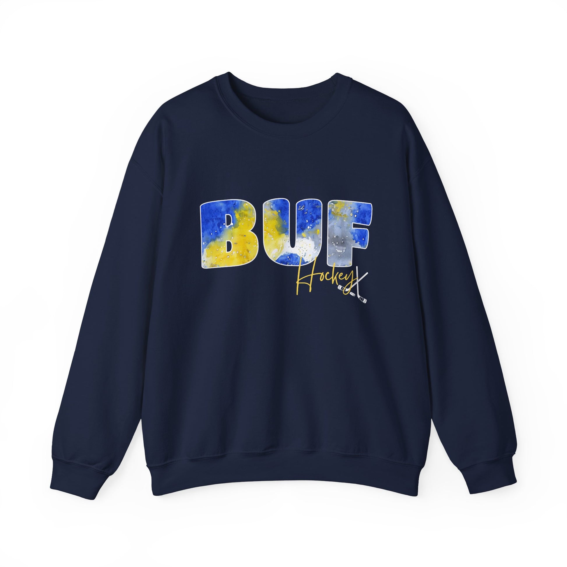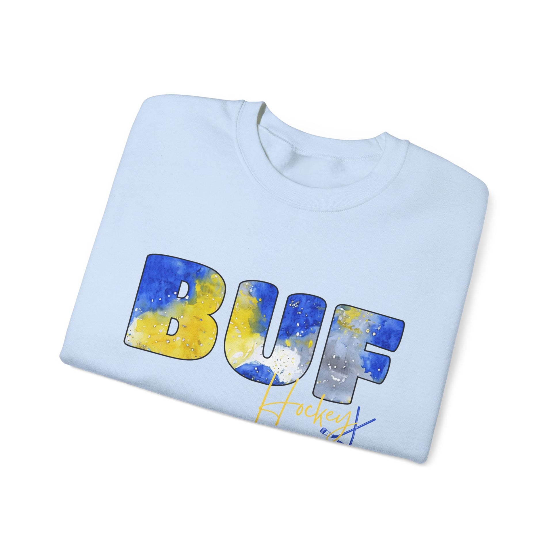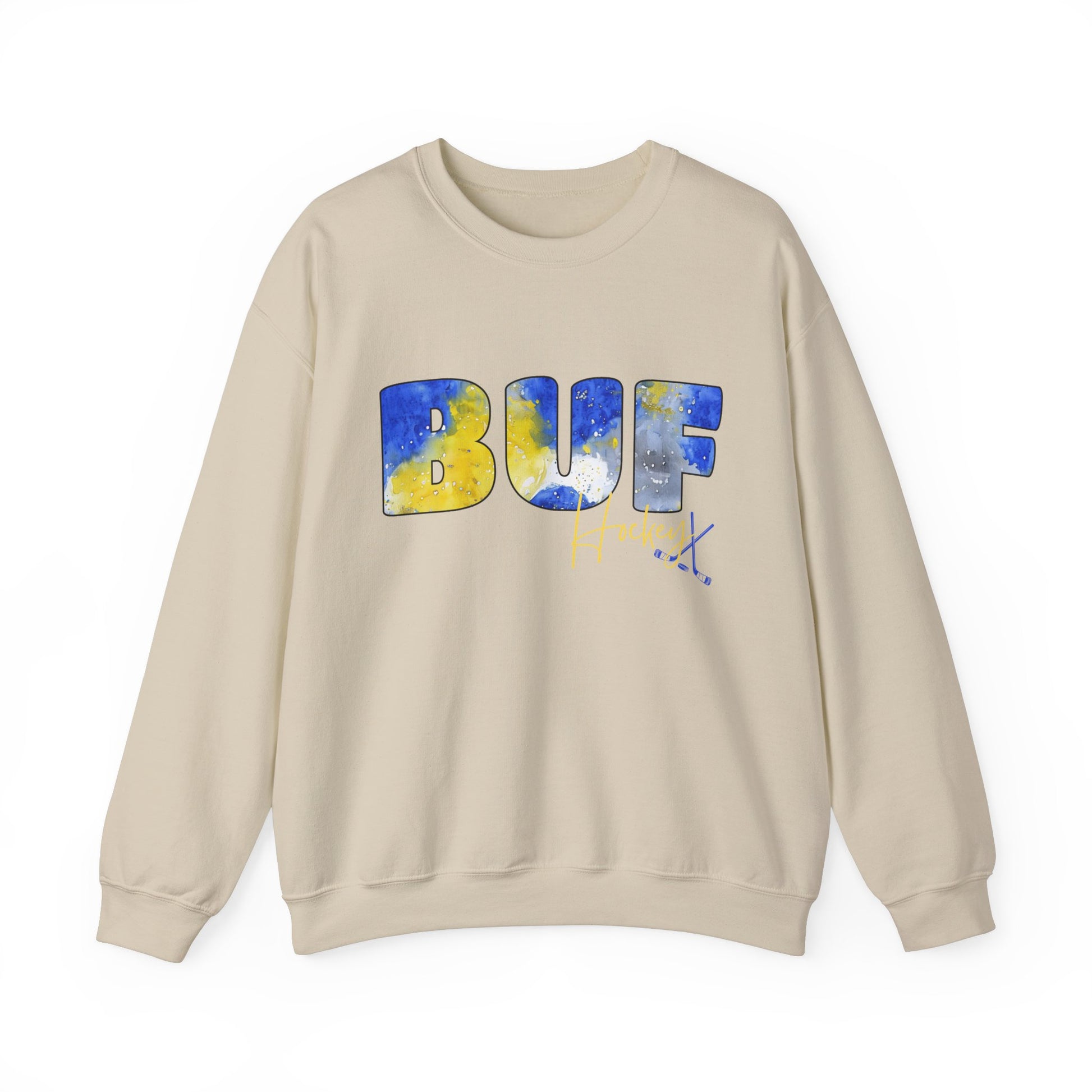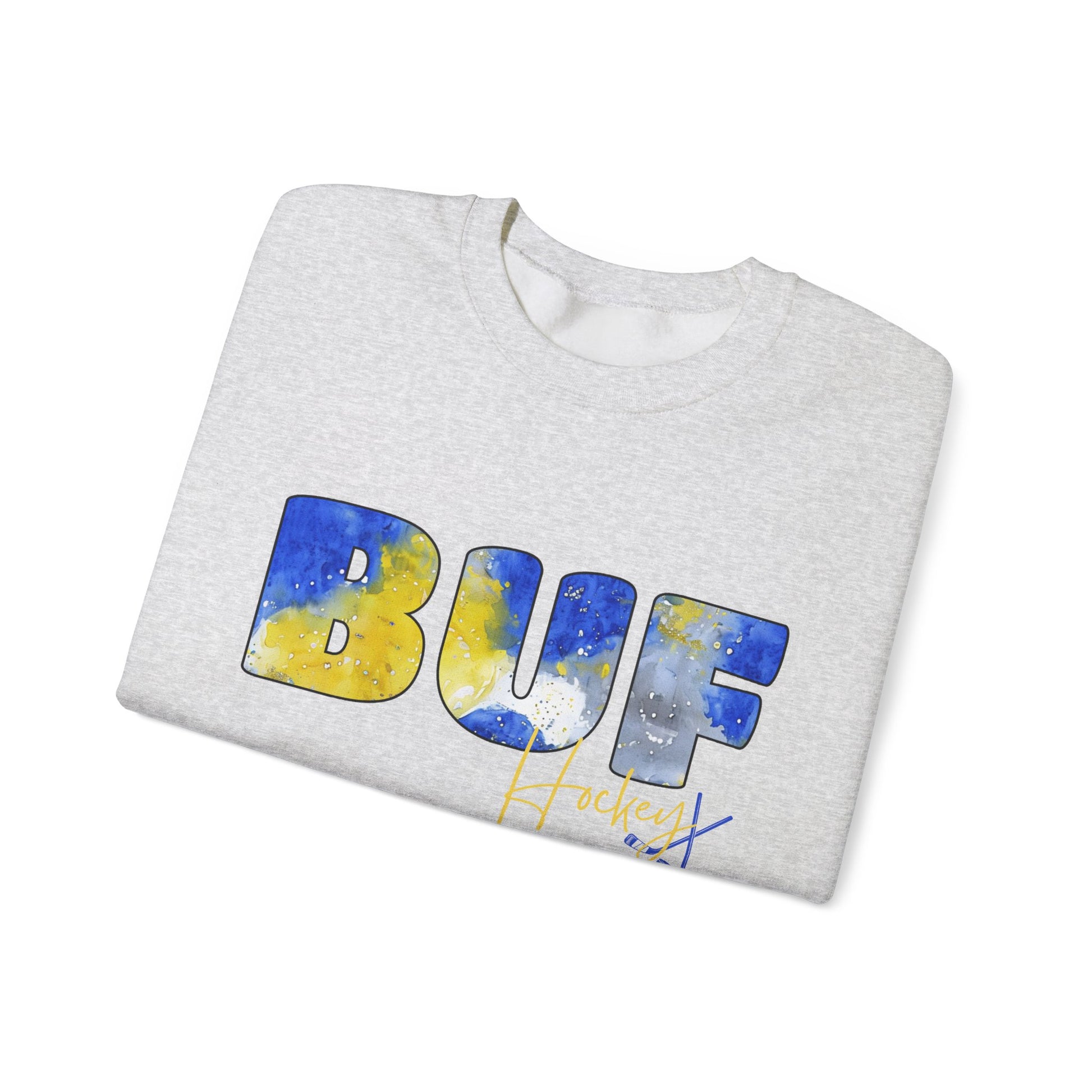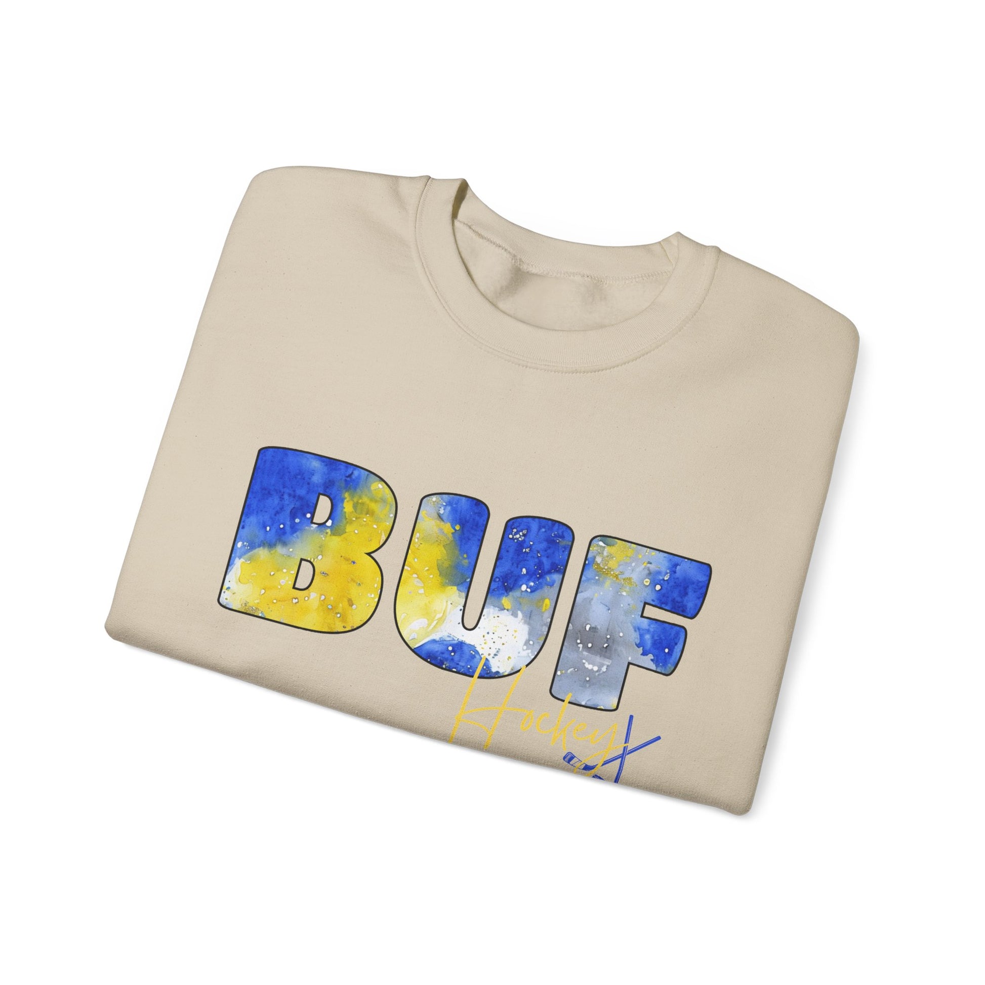 Sabres Paint BUF Watercolor Unisex Heavy Blend™ Crewneck Sweatshirt