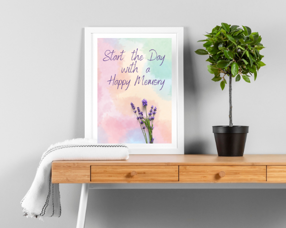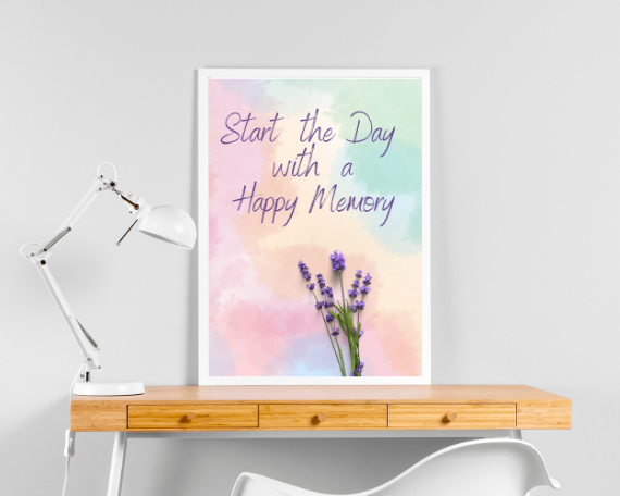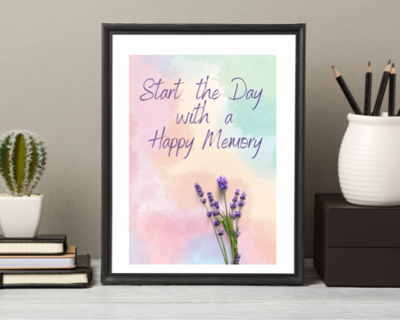 One of our favorite collections is the digital download collection. There is a growing collection of inspirational prints in a variety of sizes with a single purchase download available today. This beautiful pastel print with the quote, "Start the Day with a Happy Memory" is a beautiful way to start any day. This download is for a 24 x 36 print.