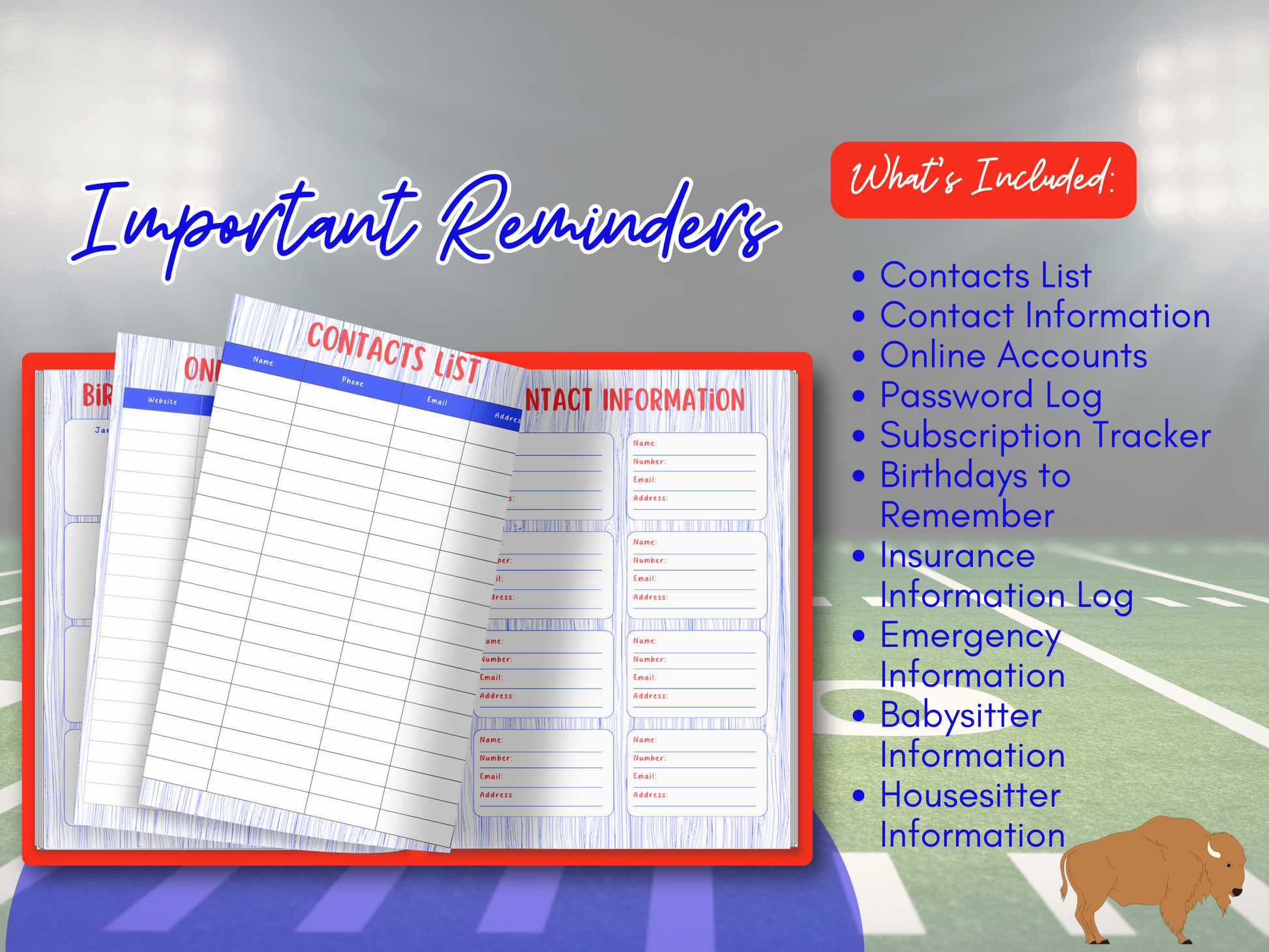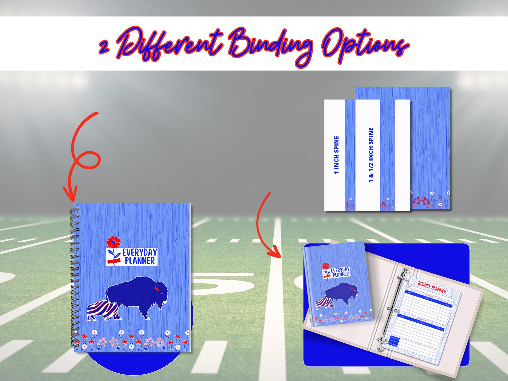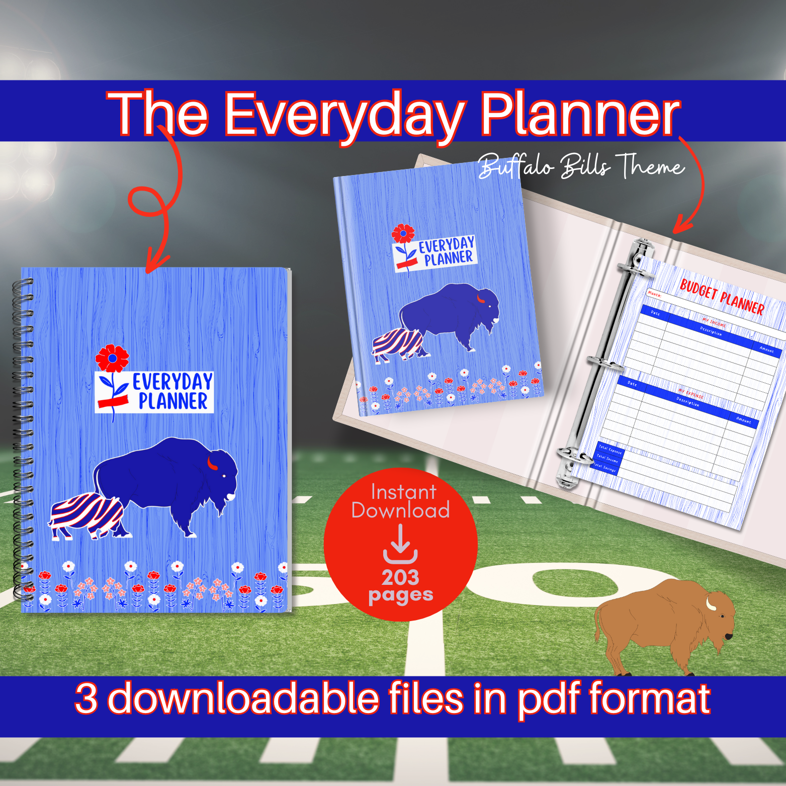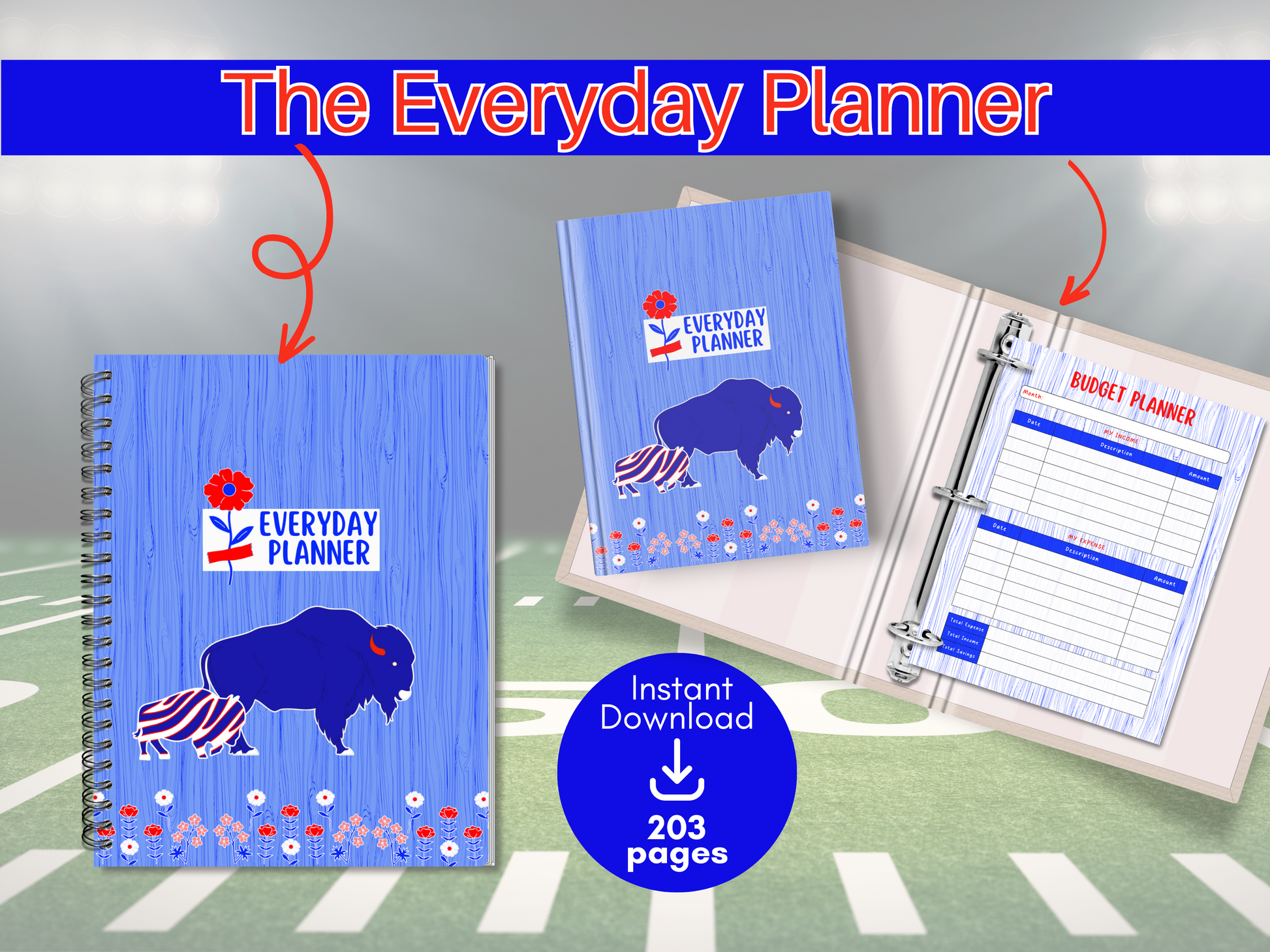 Crafted featuring a sleek and stylish design, our Buffalo Bills Everyday Planner is perfect for fans who want to stay on top of their busy lives while proudly displaying their team allegiance. It is a downloadable purchase and sent in a pdf format. Whether you're a seasoned planner pro or just getting started on your organizational journey, this planner is sure to become your go-to tool for staying on track and achieving your goals.