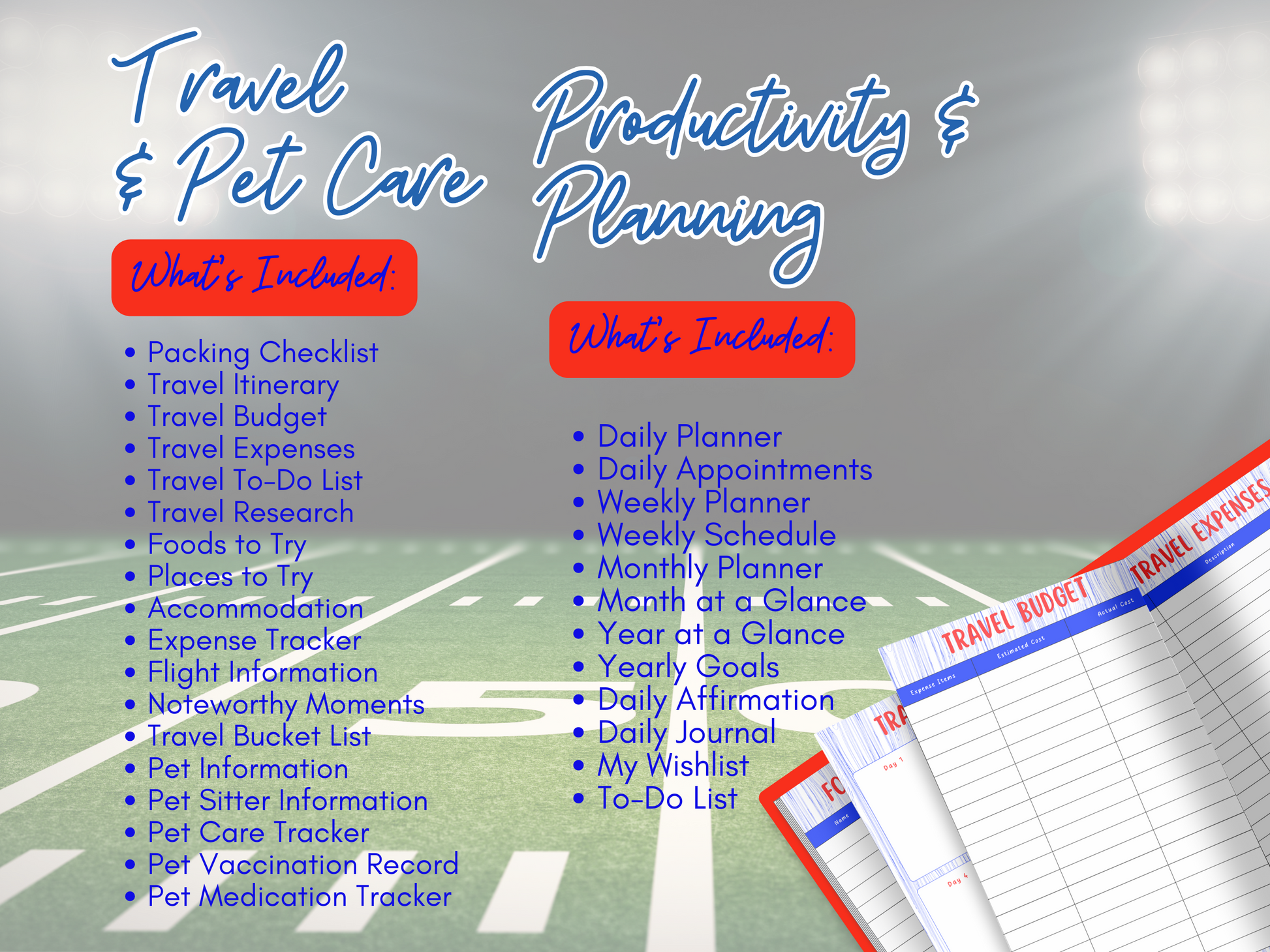 With dedicated sections for organizing finances, household and cleaning tasks, travel plans, pet care, important information, fitness goals, meal planning, and reading lists, our Everyday Planner covers all the bases to keep you on top of your game, both on and off the field.