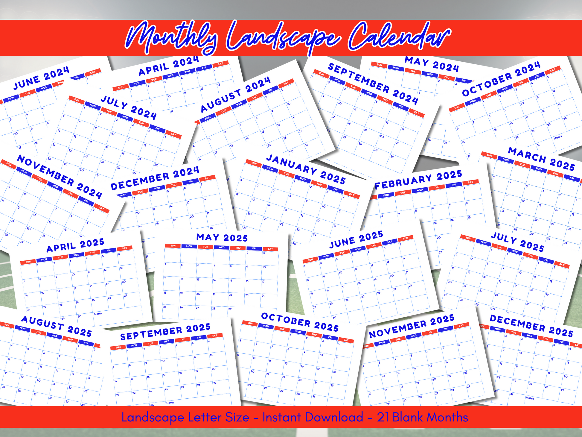 The download also includes 21 monthly calendars in landscape format (from April 2024 - December 2025) and monthly 2 page calendars for each month of the year. This planner includes over 200 pages in total!
