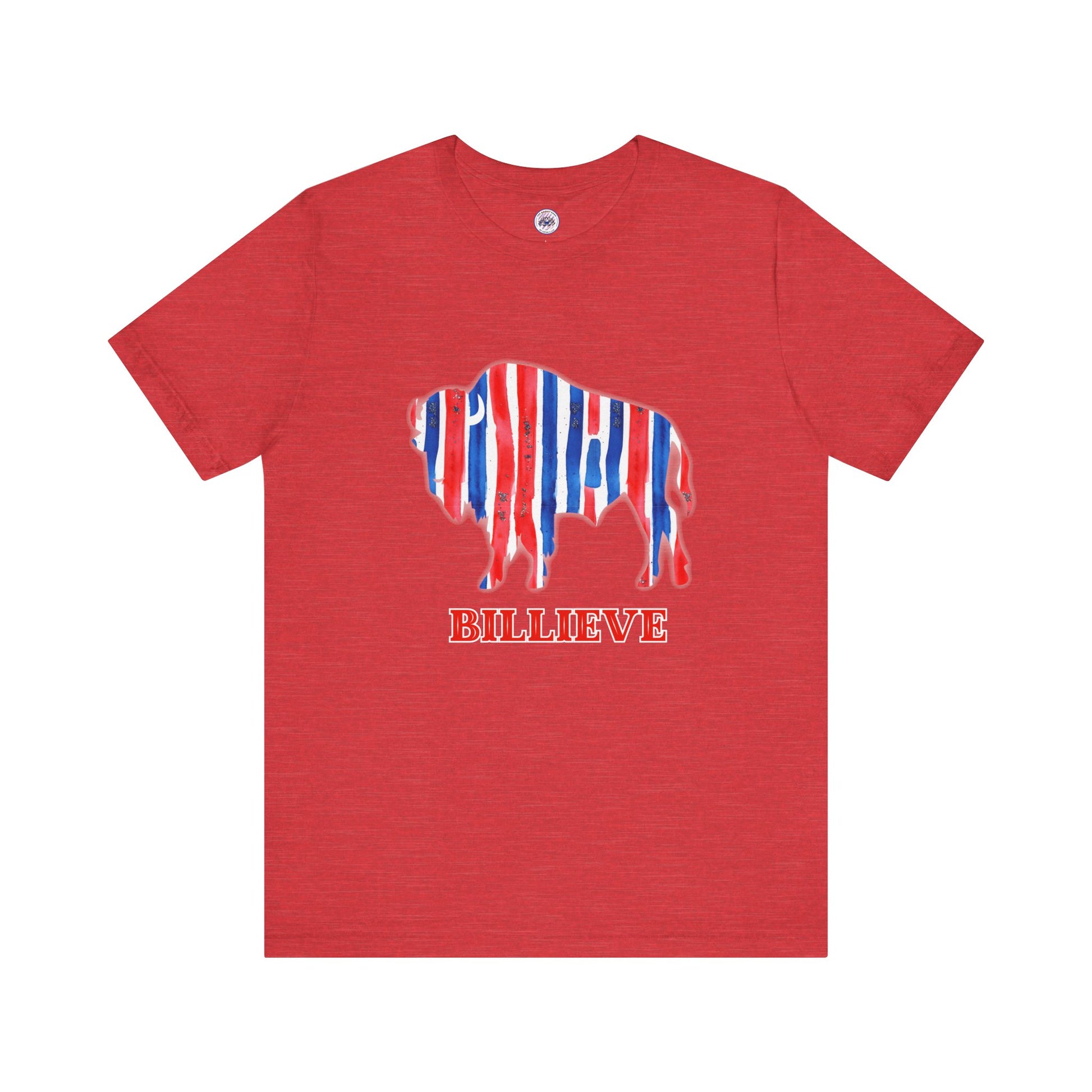 - Original Watercolor Design: The "Billieve" design features vibrant splashes of red, white, and blue, celebrating the energy and loyalty of the Bills Mafia.