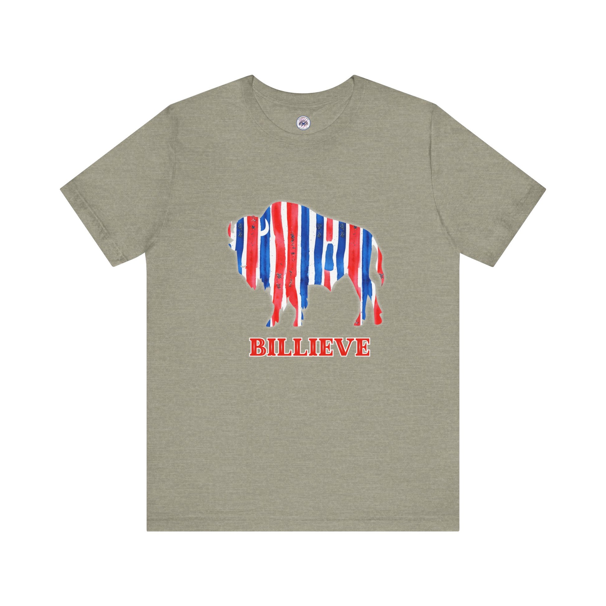 The Bills Mafia never gives up—and neither does this shirt. With its heartfelt message to "Billieve," this t-shirt is a testament to the unwavering spirit of Buffalo fans everywhere.