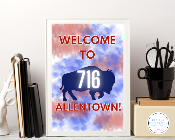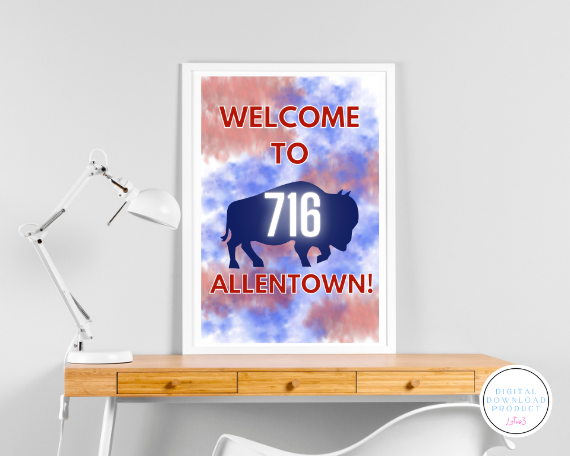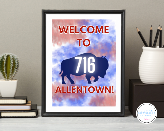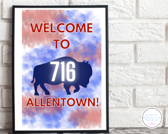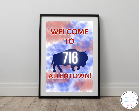 Are you looking for the perfect Bills Digital artwork to print and maybe frame for a room in your home or office where you want to boast your passion for the Buffalo Bills and other Buffalo Teams? We have got you covered!🦬 This Welcome to Allentown printable will look amazing in any room!